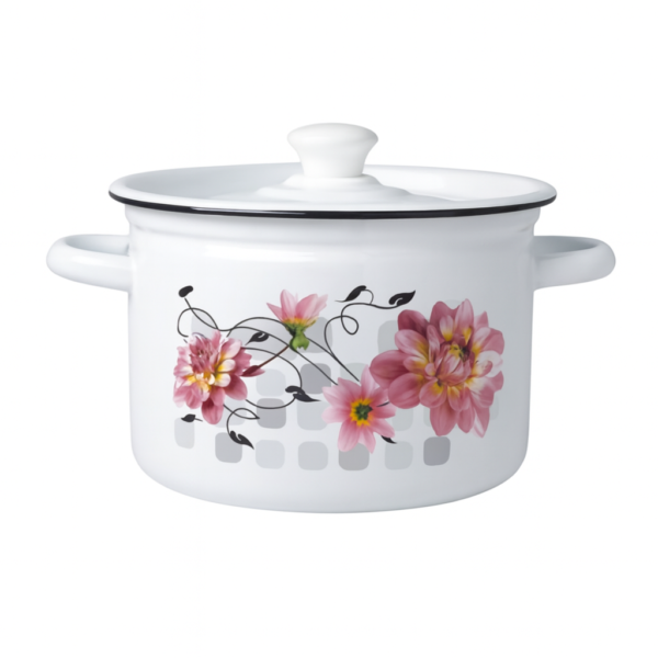 Emaljēts 2,5 litru katls ir praktisks un ietilpīgs trauks lielāku ēdiena porciju pagatavošanai — zupām, buljoniem, kompotiem, putrām un citiem ēdieniem. Cilindriskā forma nodrošina vienmērīgu uzsildīšanu, savukārt izturīgais tērauda korpuss ar kvalitatīvu emaljas pārklājumu ir noturīgs pret koroziju un viegli tīrāms.