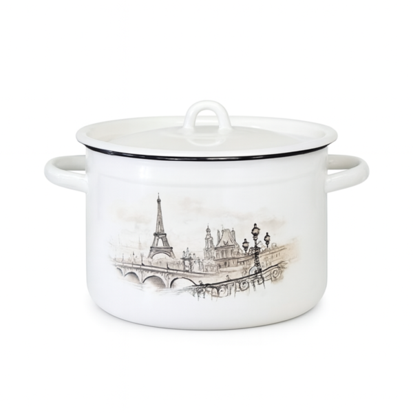 Emaljēts 5,5 litru katls ir praktisks un ietilpīgs trauks lielāku ēdiena porciju pagatavošanai — zupām, buljoniem, kompotiem, putrām un citiem ēdieniem. Cilindriskā forma nodrošina vienmērīgu uzsildīšanu, savukārt izturīgais tērauda korpuss ar kvalitatīvu emaljas pārklājumu ir noturīgs pret koroziju un viegli tīrāms.