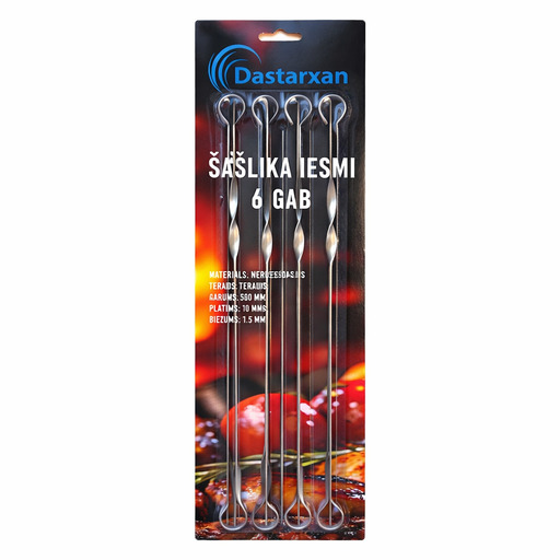 Комплект шампуров из нержавеющей стали 6 шт. 500×10×1.5 мм