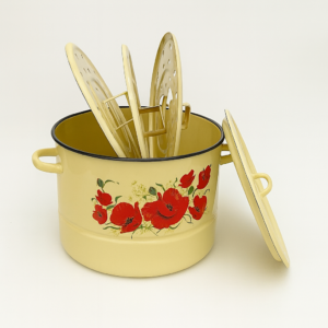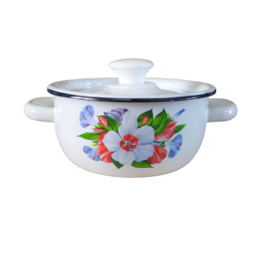Emaljēts katliņš 1,5 L ar vāku un zīmējumu